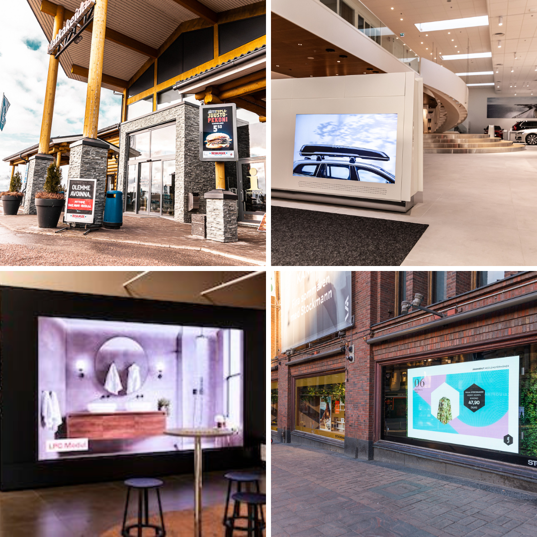 Digitaaliset näyttöratkaisut auttavat sinua hallitsemaan sisältöä, kampanjoita ja viestintää keskitetysti kaikissa myymälöissä ja toimipaikoissa.